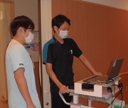 4階南病棟(回復期リハビリ病棟)勤務の岡田勝好と福間恒日児が紹介します。