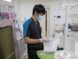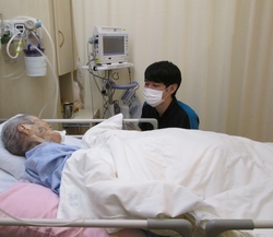 患者さんの食事の配膳、食事の介助を行います。経管栄養の方の栄養剤や内服薬の投与も行います。患者さん一人一人に合わせた食事の環境を整え、それぞれのペースで食事ができるよう心がけています。 |